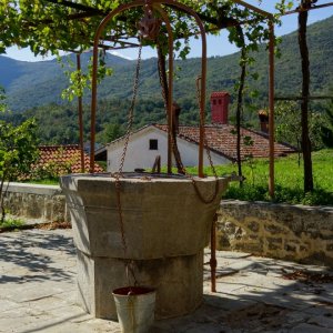 Kvarner: Veprinac > Schöner alter Brunnen mit Blick aud das Uckagebirge