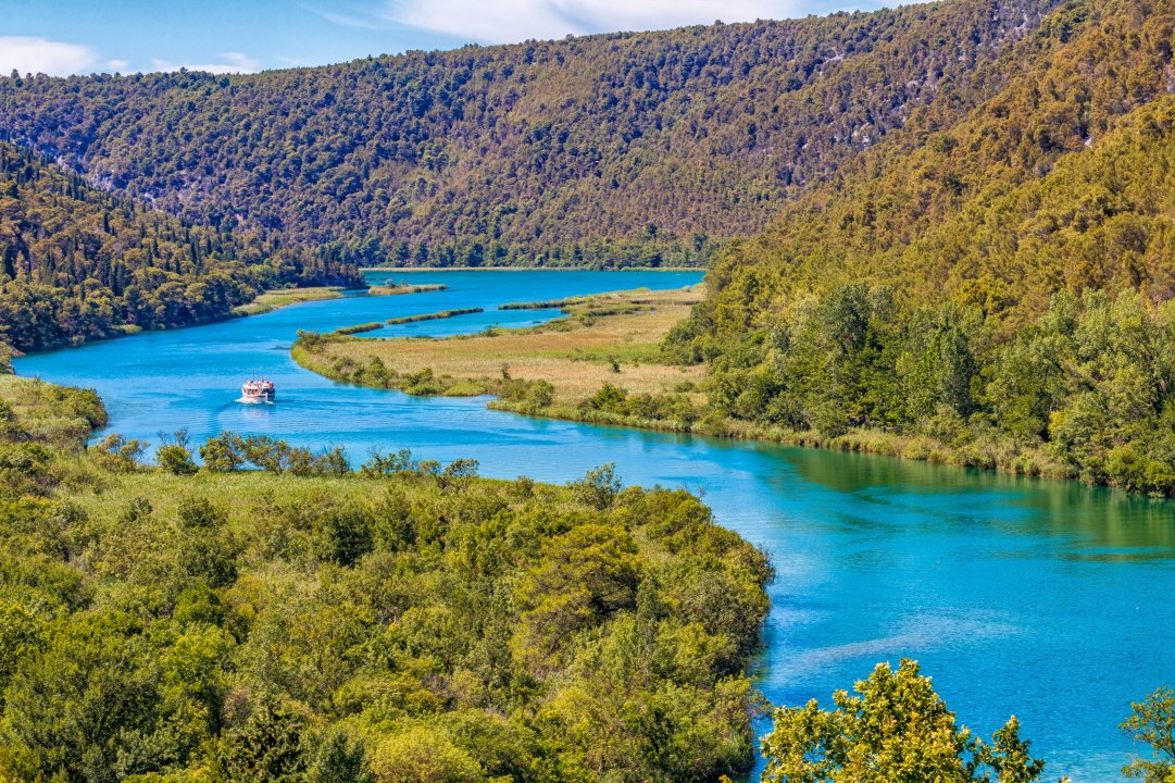 ein Blick vom Lozovac Park auf den Lauf der Krka