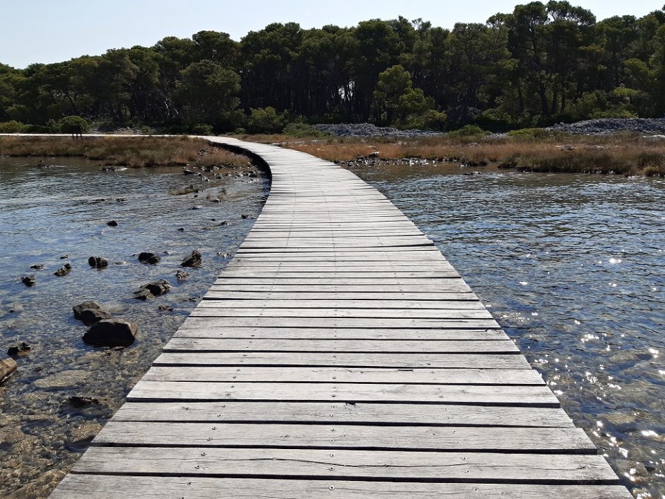 Dieser Holzsteg verbindet das Festland bei Sibenik mit der kleinen Insel Skoljica.