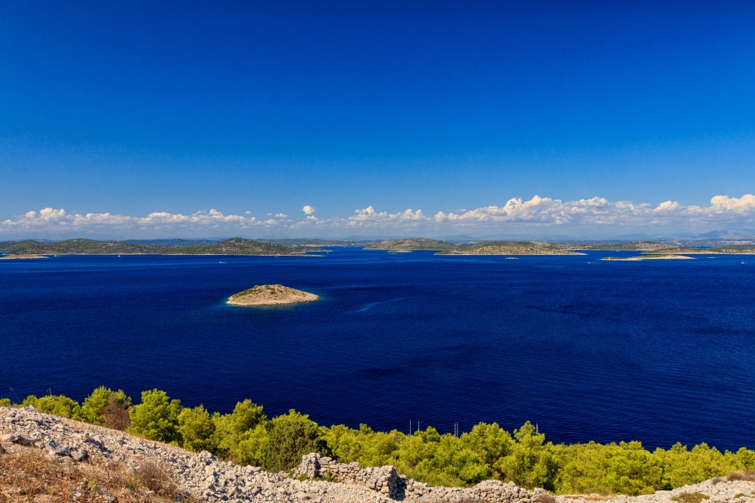 Von einer verlassenen Küstenbatterie auf der Insel Žirje hat man diesen fantastischen Blick auf die Inselwelt vor Šibenik