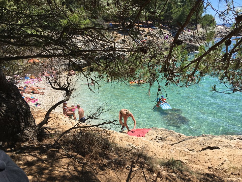 Blick durch die Pinien auf die wunderschöne Bucht Pinizule im Naturpark Kap Kamenjak