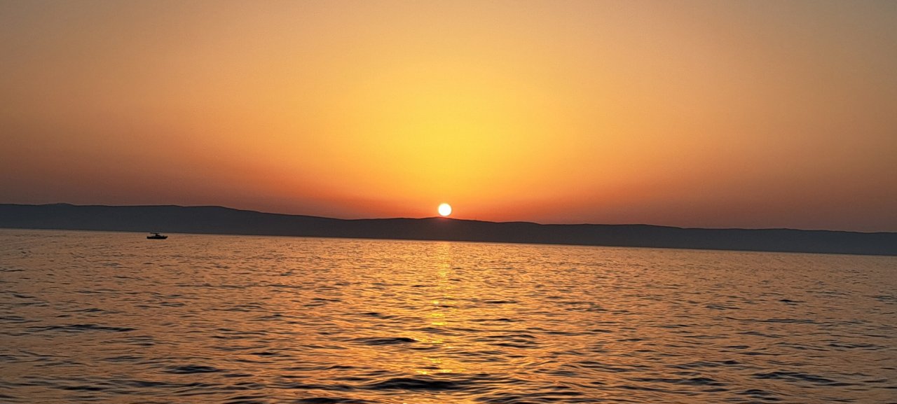 Auf der Heimfahrt von der Insel Rab nach Punat ein wunderschöner Sonnenuntergang über der Insel Cres.