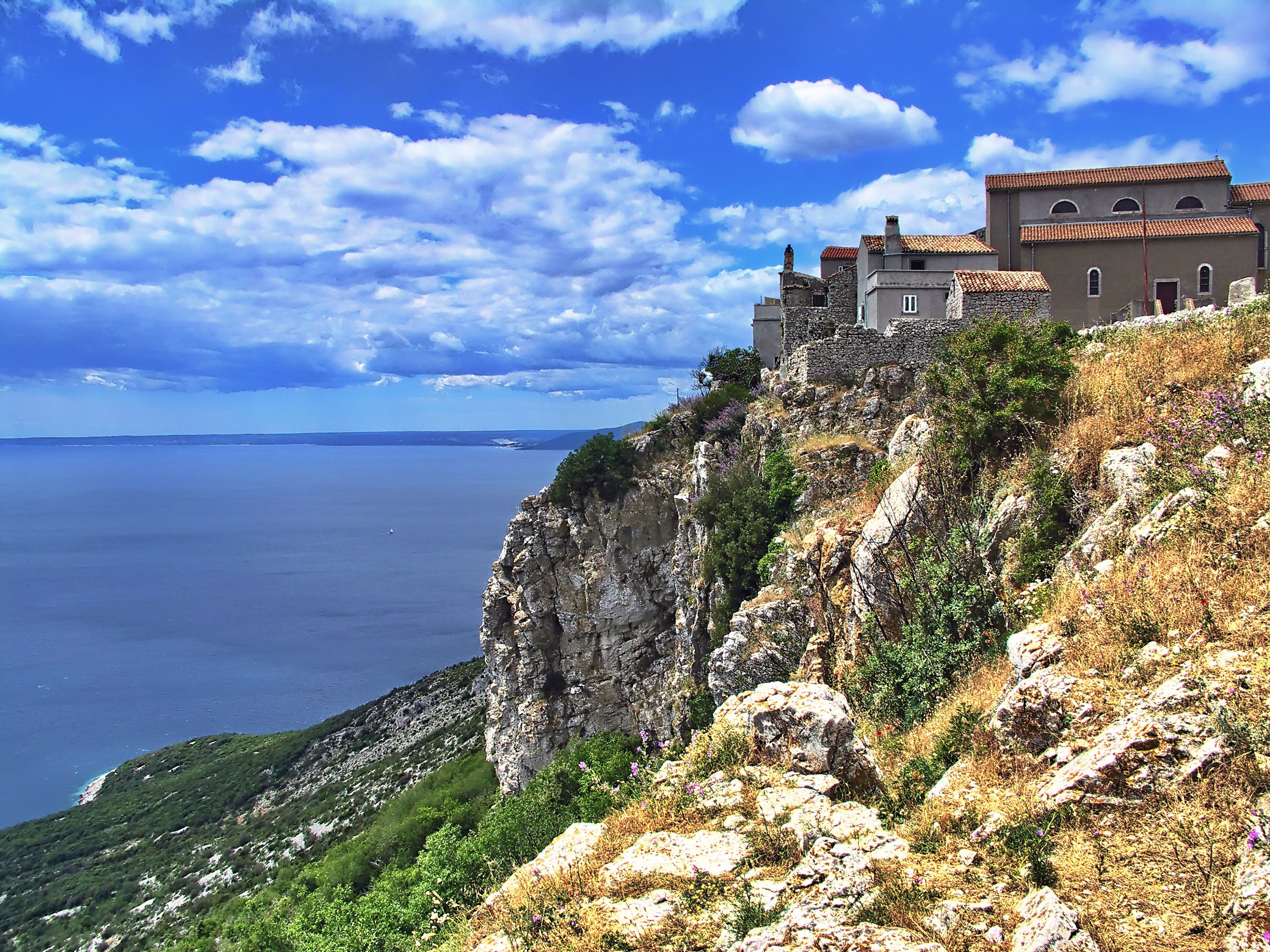 Der Ort auf dem Felsen der Insel Cres.