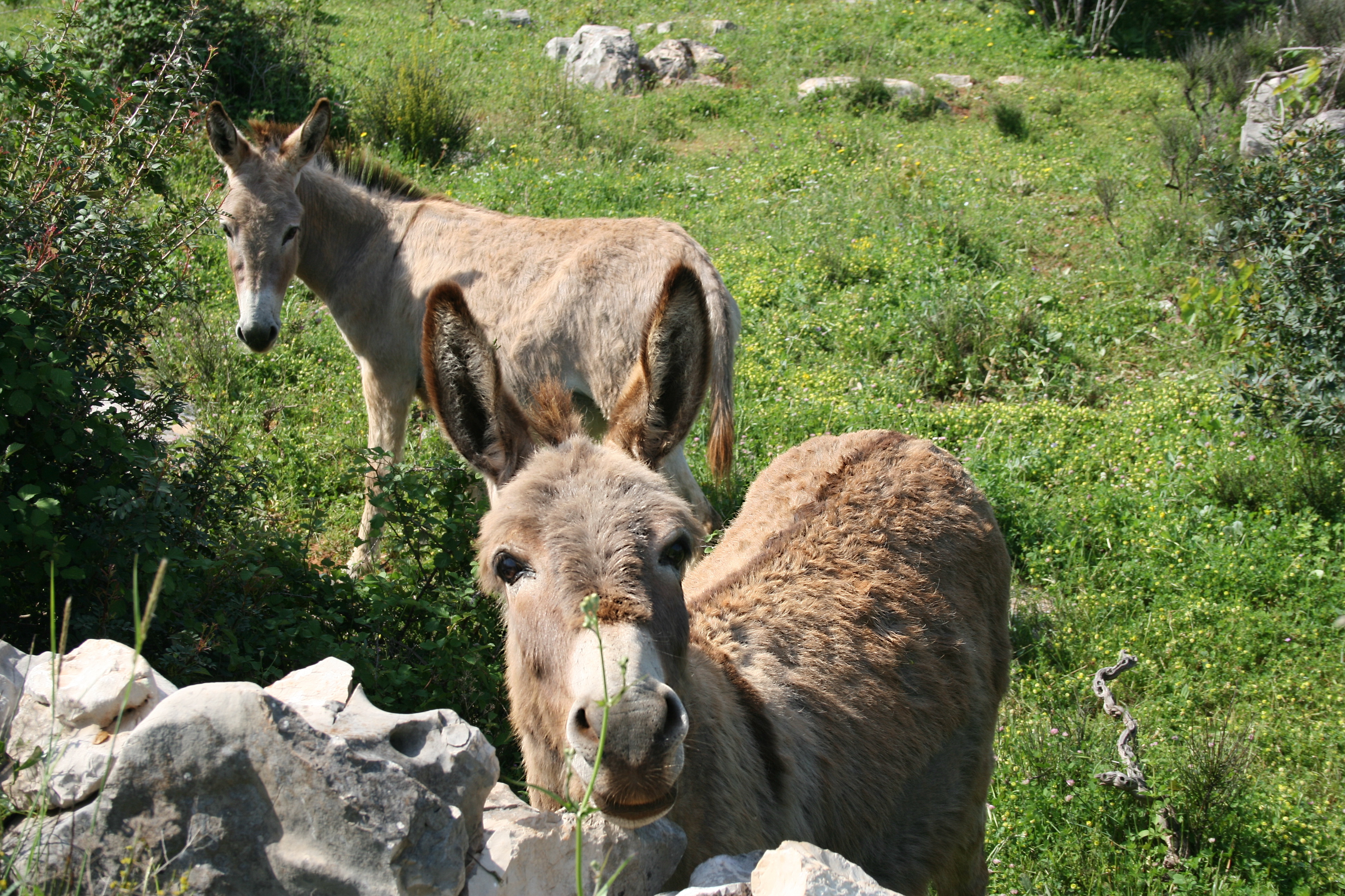 Mitteladalmatien > HVAR > neugierige Esel im Velo Polje