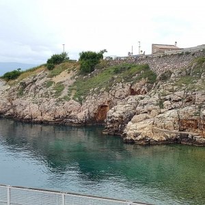 Konobaterrasse in Vrbnik auf Krk, mit Aussicht auf das Meer