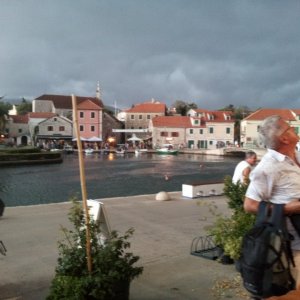 Immer wieder beeindruckend finden wir es, wenn es "draußen" über dem Meer schon so richtig kracht, an Land aber noch die Ruhe vor dem Sturm herrscht. Dann zieht es uns immer wieder wider besseren Wissens an den Strand....