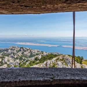Vom Beobachtungsturm der alten Militäranlage Panos hat man diesen tollen Blick über die Adria und der Insel Pag und bei klarem Wetter wahrscheinlich sogar Zadar