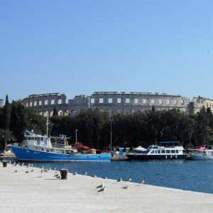 Amphitheater Pula vom Hafen aus