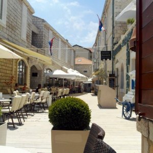 In einer Altstadtgasse in Rab-Stadt ein Restaurant in einem tollen Ambiente.