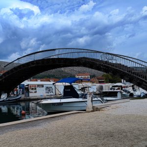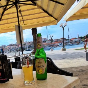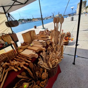 Abends hielten wir uns öfters in der Altstadt von Trogir auf. Dabei haben wir auch die kleinen Boote im Abendrot beobachten können. Die Marktstände leuchteten in bunten Farben.