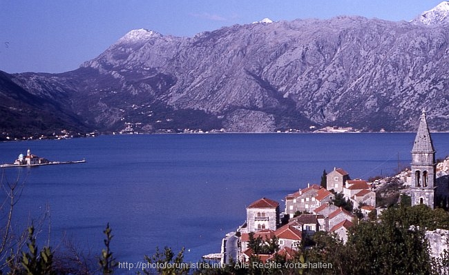 Den nördlichen Buchtteil nennt man Bucht Risan und im Süden liegt die Bucht Kotor. An dieser Bucht erheben sich die Berge bis etwas über 1300 m Höhe.