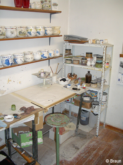 Hier nun einige Fotos aus der Töpferei, die u.a. verschiedene Arbeitsabläufe zeigen.