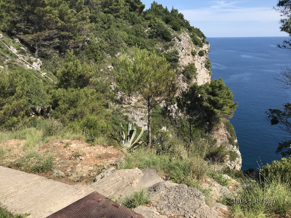 Allerdings gab es nun zwar einen Strand. Niemand konnte jedoch vom Land aus dorthin gelangen, weil eine steile Felswand von 200 m Höhe den Zugang versperrte. Was also tun? Ganz einfach. Im Laufe von einigen Jahren haben die Einheimischen einen gesicherten Weg in den Fels geschlagen und dazu auch einen Tunnel gegraben. Jetzt ist dieser Strand für jedermann zugänglich, der sich im Sommer bei teils großer Hitze der Strapaze unterziehen möchte den Höhenunterschied zu überwinden. Festes Schuhwerk und Trittsicherheit sind natürlich Pflicht für diejenigen die an diesen Strand zum Schwimmen möchten.