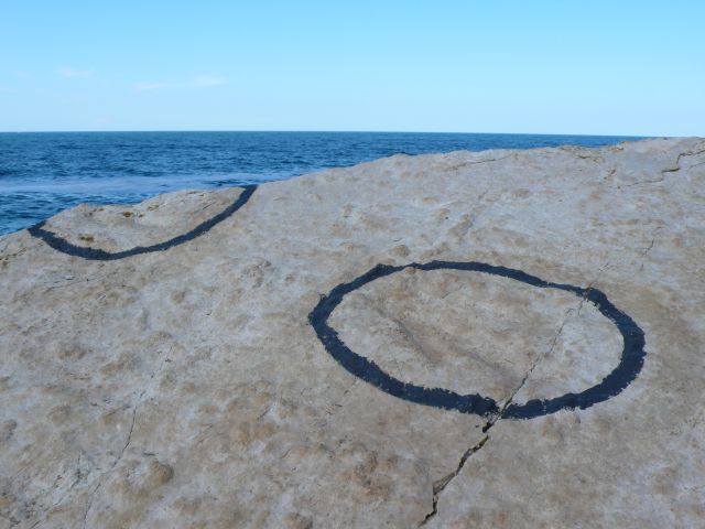 Der Standort gegenüber der kleinen Insel Fenoliga wurde ausgewählt, da dort auf der Insel, aber auch gegenüber an Land sehr gute Abdrücke der Urzeittiere gefunden worden.