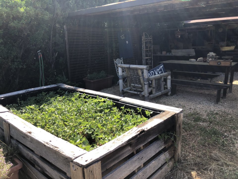Selbst zusammengezimmerte Unterstände dienen als Schutz für die verschiedensten Pflanzen und Kräuter.