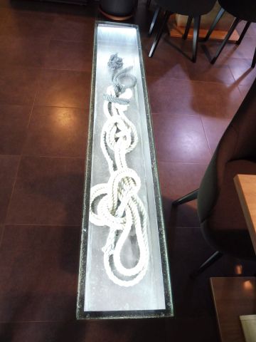Sehr gut gefallen hat mir die mit Glas abgedeckte und begehbare Nische im Boden mit dem alten Tau eines Fischerbootes.