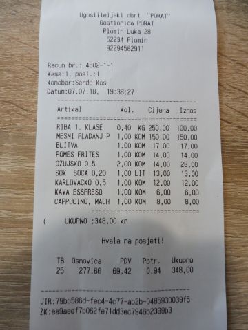 Nun die Rechnung. Man achte auf den Preis. Karlovacko ist billiger als Ozujsko. Seltsam. Hat vielleicht Oettinger die Brauerei übernommen und die Produktion optimiert?