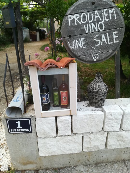 Wer Lust hat Weine zu probieren. In dieser Unterkunft hinter dem Hotel, gibt es welchen zu kaufen. Auch Olivenöl wird angeboten.