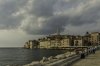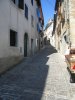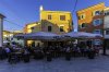 Fasana am frühen Abend die Plätze und Gassen liegen schon im Schatten der obere Bereich wird von den letzten warmen Sonnenstrahlen angeleuchtet.