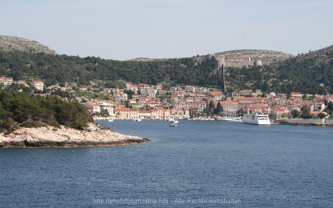 Die Stadt Hvar in Sicht