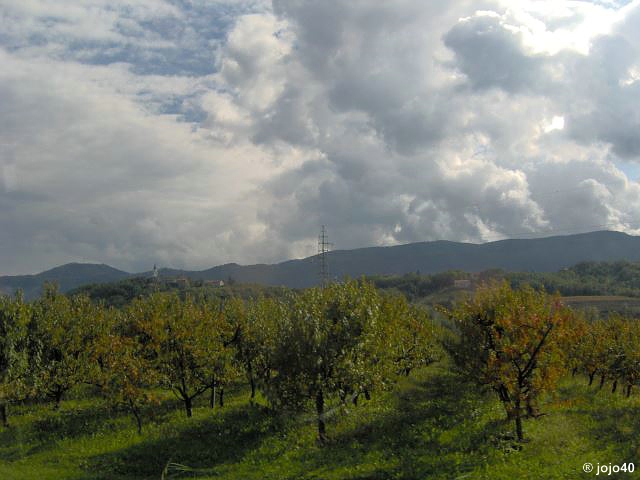 Nach Nova Gorica wird das Tal weiter und die Strasse führt uns durch Gebiete mit Obstanbau.